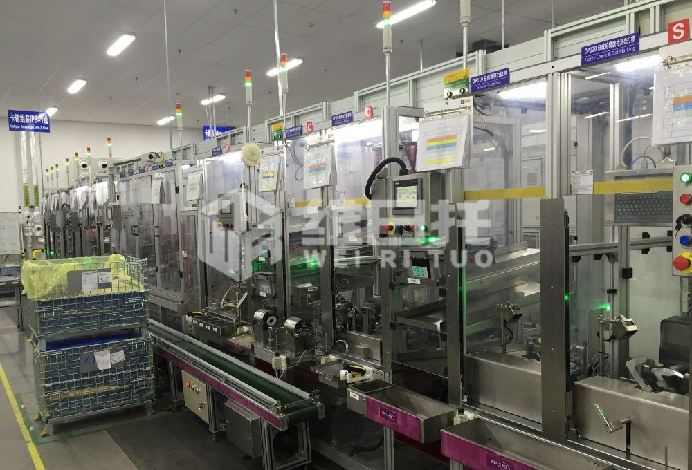 盤式制動器總成:集成了防塵板壓裝、軸承壓裝、輪轂壓裝、輪轂螺栓壓裝、跳動檢測、拖滯力測試、氣密性檢測等??膳c工廠MES生產(chǎn)管理系統(tǒng)對接。 制動鉗總成裝配檢測線:集成汽車前制動鉗總成裝配、主要包括:鉗體自動吹掃、放氣螺釘擰緊,密封圈裝配及檢查,防塵套裝配,活塞組件裝配,活塞滑陰檢測,高低壓氣密性檢測,超高壓氣密性檢測,支架組件裝配(除塵、注脂、裝軸銷套),彈簧片裝配,制動塊裝配,鉗總成預(yù)連接,軸銷螺栓擰緊,鉗總成滑阻檢測、輪轂檢測等。 前懸架總成:此線集成了:盤器組裝、測試。